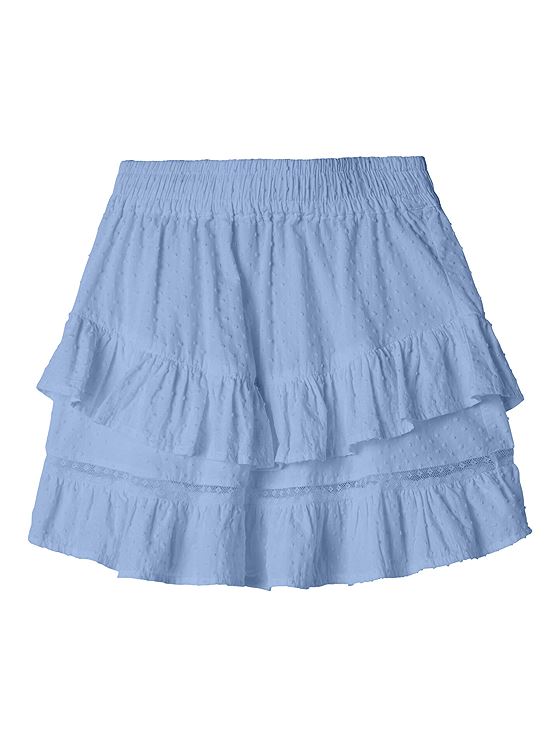 Gjør barnets garderobe klar for solskinnsdager med dette lekne og luftige skjørtet! Perfekt for aktive små som elsker å danse, løpe og utforske – her får du både bevegelsesfrihet og et stilig uttrykk i ett. Det vevde stoffet gir en klassisk, litt strukturert finish, mens rysjedetaljene tilfører et søtt preg. Med en elastisk og justerbar midje sitter skjørtet alltid komfortabelt – uansett om det brukes til lek eller spesielle anledninger.