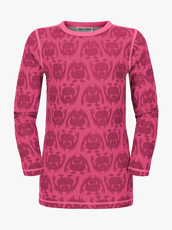 Denne myke ullgenseren holder barnet varmt og komfortabelt – uten å klø. Monsterull-genseren har ull på utsiden og bomull på innsiden, slik at den både varmer og føles behagelig mot huden. Den to-lags konstruksjonen transporterer fukt effektivt bort under lek, samtidig som den isolerer godt på kalde dager. Perfekt som mellomlag under utedressen eller alene inne. Det morsomme monsterprintet gjør den raskt til en favoritt i garderoben.