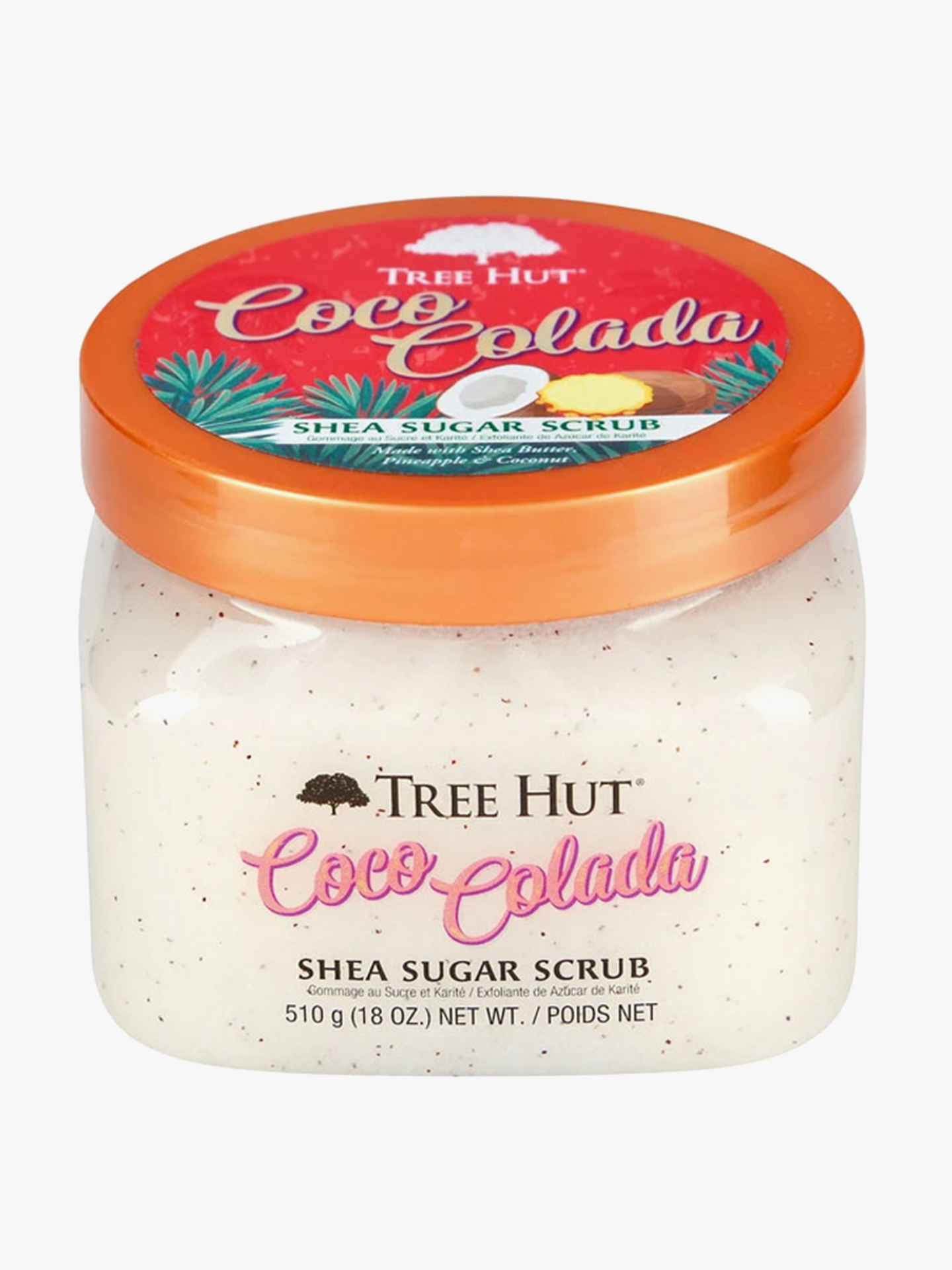 Sucrose / Glycerin / Polysorbate 20 / Silica / Cocos Nucifera (Coconut) Oil / Ananas Sativus (Pineapple) Fruit Extract / Prunus Amygdalus Dulcis (Sweet Almond) Oil / Macadamia (Macadamia Ternifolia) Seed Oil / Oenothera Biennis (Evening Primrose) Oil / Citrus Aurantium Dulcis (Orange) Oil / Butyrospermum Parkii (Shea) Butter / Persea Gratissima (Avocado) Oil / Carthamus Tinctorius (Safflower) Seed Oil / Cocos Nucifera (Coconut) Powder / Ascorbic Acid / Retinyl Palmitate / Aqua (Water/Eau) / Fragrance (Parfum) / Sorbic Acid / Phenoxyethanol / Caprylyl Glycol / Limonene / Titanium Dioxide (CI 77891)