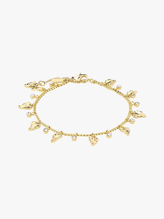 Gi antrekket ditt et touch av boho-lux med dette armbåndet fra Pilgrim. De glitrende Preciosa-krystallene og de små, organiske hjerteanhengene gir en romantisk og sofistikert vibe, perfekt for både hverdagsbruk og spesielle anledninger. Det delikate panserkjedet sørger for en feminin finish, mens forlengerkjedet lar deg tilpasse passformen etter eget ønske.
